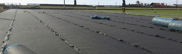 Очень часто большие по площади горизонтальные дренажные системы сооружаются для искусственных газонов спортивных площадок или под проницаемыми мощеными покрытиями (автостоянки, открытые склады и т.д.). Система Макдрейн® может укладываться горизонтально и при этом сохранять дренажные свойства.