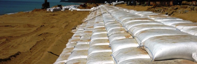 Макбэг® представляет собой мешок из тканого геотекстиля, который заполняется на объекте песком или цементным раствором и используется для сооружения бун, приподнятых пляжей и морских волноломов. Кроме того, продукт может использоваться для защиты фундаментов морских сооружений, а также в качестве опоры для подводных трубопроводов.