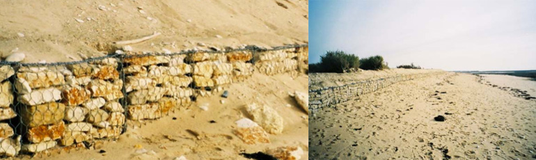 Мелиорация дюн и природоохранные мероприятия. Широко признано огромное значение песчаных дюн для обеспечения стабильности береговой линии и безопасности прибрежной зоны. Поэтому во многих странах реализуются проекты по мелиорации и сохранению существующих дюн. Мы предлагаем технические решения, которые обеспечивают соблюдение ландшафтно-экологических требований с учетом доступности материалов и простоты реализации. Для тех проектов, где легкодоступен песок, наиболее подходящими техническими решениями являются Мактуб® и Макбэг®. При наличии камня или другого материала возможно применение габионов или матрацев Рено.